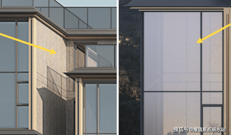 笔者将万科雲樾发布的图片放大多倍,仔细研究发现,两侧玻璃中间有隔墙设计,这种隔墙设计避免了隔窗对望的“尴尬”,又能为大面积的玻璃幕墙承载形成支撑力,有效地增强了窗体的强度。