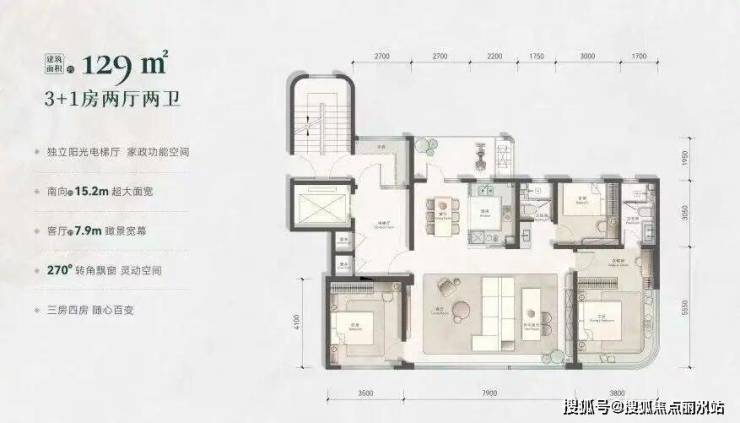 首开主推建面约129㎡、140㎡、160㎡,实打实地说户型是真好,建面约129㎡的做到了南向面宽约15.2米,客厅约7.9米超大面宽,可灵活三居变四居,主卧270°飘窗,还有北阳台,一梯一户的设计,建面约143㎡的四居户型还设置有独立的家政间;大部分户型的得房率能达到约96%以上,预计均价约23000元/㎡-26000元/㎡。