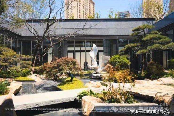 下沉庭院:围合式中庭内,点缀着石谷流云的艺术石景和纯铜玉兰花雕塑,中央一池碧水静谧流淌,潺潺水声仿佛在演奏自然交响。周边的叠瀑、浮桥、小岛、溪涧等水岸印记,让园林和精致生活浑然天成。