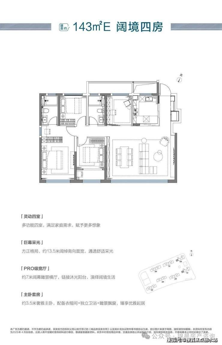 143㎡阔境四房:东边户实际得房率高达90%以上,堪称同面积产品的性价比之王。自带三大阳台和双飘窗的超级赠送,4+X灵动空间布局,尽显崂山改善居所的钟情之选。