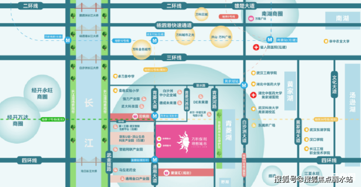 项目门口即是307公交始发站,途径地铁5号线终点站,实现公交地铁换乘,连接了青菱、武昌滨江、徐东商圈、武汉火车站等诸多区域,通过与武汉地铁多条线路的换乘,实现武昌与汉口、汉阳两镇的便捷联系。区域内规划未来新建两条地铁线路,地铁32号线和地铁17号线(均已纳入线网规划)③,地铁建成后,后续出行将更加便捷。