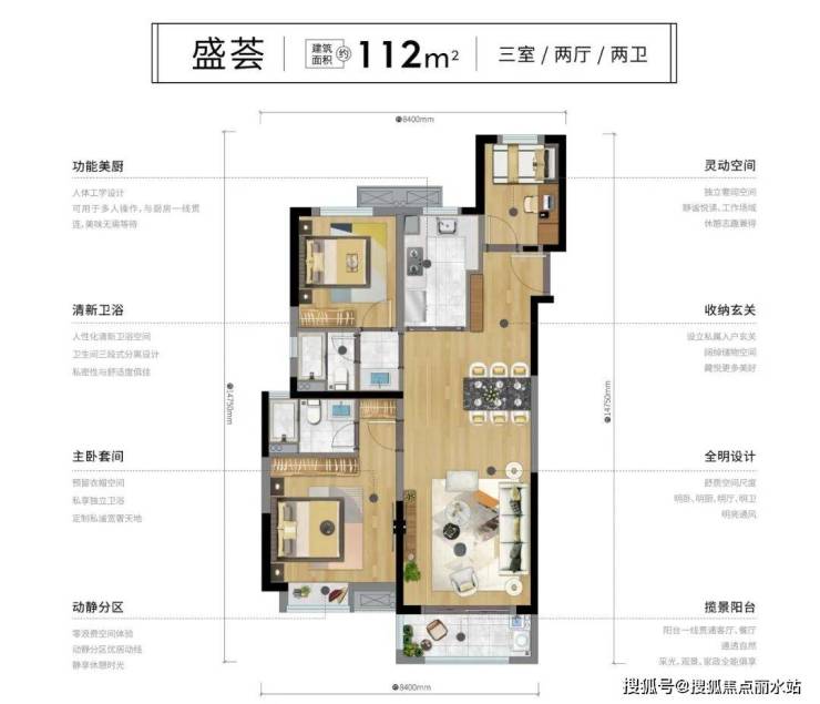建筑面积约112平方米户型,三室两厅两卫,入户预留玄关柜空间,让收纳井然有序,尊享归家仪式感;北向功能房可随心改造为老人房,或者书房,满足不同的居家需求;南向阳台开阔景观视野,阳光与丽景在心间轻舞跃动;主卧套间设计,预留衣帽空间,私享独立卫浴,居住舒适度高。