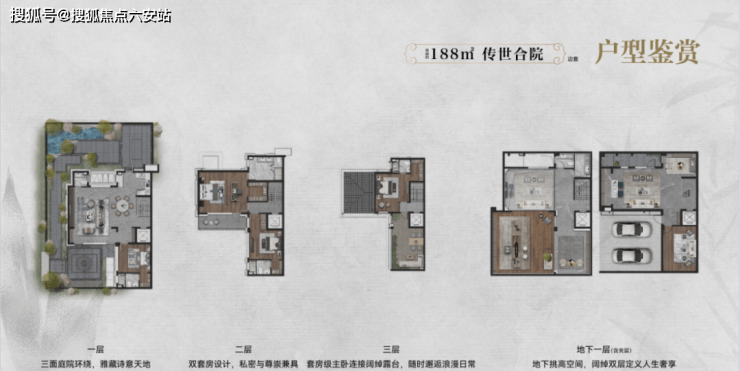 一层:院厅共生——客厅、餐厅、庭院无缝衔接,老人套房推窗即景,实现“莳花弄草,躺椅听风”的颐养场景36;