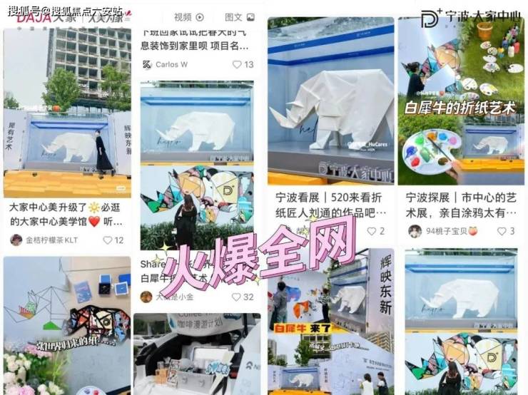 爱马仕御用艺术家、世界顶级折纸大师刘通先生的首个户外大型展览,正式落地宁波。一张完整的正方形纸,不拼贴、不裁剪,凭借瑰丽的想象与精密的计算分配,折叠出充满生命力和创造力的作品,在东部核心永久性保存,赋予宁波这座历史文化名城以先锋前卫的艺术灵魂,这极具艺术价值和环保意义的“白犀牛”,瞬间成为宁波新晋潮流打卡坐标!