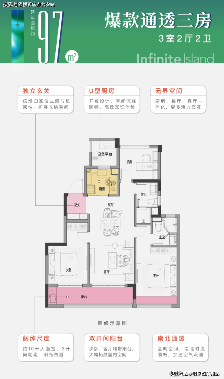 建筑面积约99平方米的创意样板间,半开放式的餐厨设计,打破了传统“一人做饭,全家等待”的局限,畅通了家庭交流空间。🔻售楼热线:☎ 400 832 8823「售楼处」☎〢网上售楼中心〢🔻