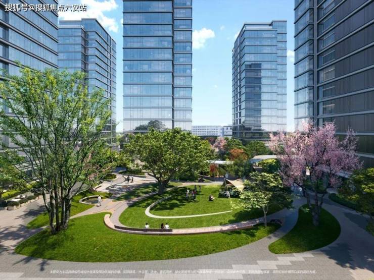 整个园区以围合式布局展开,七幢建筑借鉴中国古典园林的精髓,最大楼间距达到了63米,使得每栋楼都能享受到270°的开阔视野,仿佛是一座座隐匿于花园中的岛屿。为了与景观相呼应,园区立面采用“水晶天幕”设计,线条纤细,使建筑宛如天空中垂下的纯净湖面。