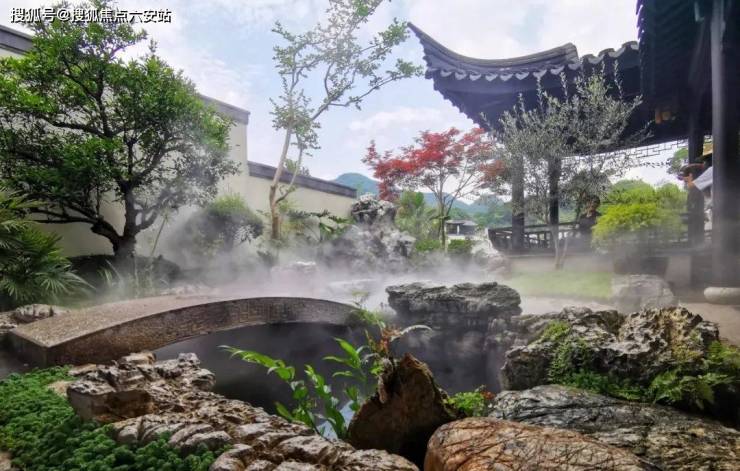 建筑风格融合白墙黛瓦、飞檐戗角等江南元素,园林设计借鉴苏州留园造景手法,营造“一院九景”禅意空间。