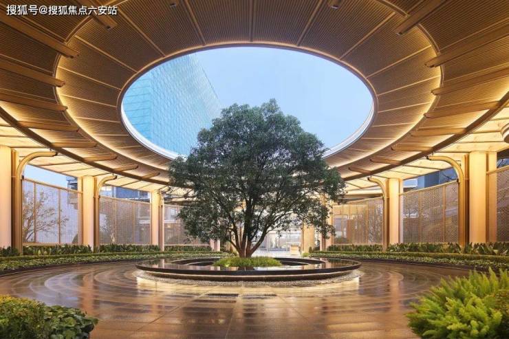 穿门而入,巨大的圆形藻井天幕,令人叹为观止。中庭一株近百年桂花+环形门庭组成了向内的“聚宝盆”,归家的仪式感直接拉满。