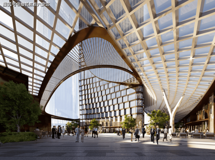 值得一提的是,海威安铂中心的建筑布局设计极具特色,尤其是酒店塔楼流转而下的天篷。天篷之上的塔楼挺拔向上,极具标志性;天篷之下的独立裙房错落有致,生趣盎然,呈现出有机的村落式空间形态。这种设计不仅增加了建筑的美感,更为居住和办公的人们提供了更为舒适的环境。