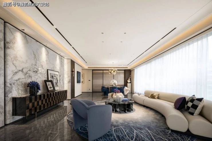 滨江揽潮誉道主打建面约318㎡、336㎡、440㎡的大平层户型,采用现代东方美学设计,融汇传统文化与现代元素。户型设计宽敞明亮,功能分区合理,既保证了居住的私密性,又促进了家庭成员间的互动与交流。特别是超大的观景阳台和270°环绕视野,让居住者在家中就能尽揽钱塘江美景,无论是日常居住还是社交展示,都能带来极强的视觉冲击力和心理优越感。走进家门,是邱德光定制的现代摩登艺术:玄关处,整面渐变曲面艺术玻璃,映射若隐若现的江景;客厅中,钱塘江的柔美曲线,融入弧形吊顶与奢石拼花;19米的超大面宽,以270°环绕视野尽揽钱塘江景,让江河倒影和城市天际线在家中交汇。这是建筑与自然的对话,更是生活与艺术的融合。