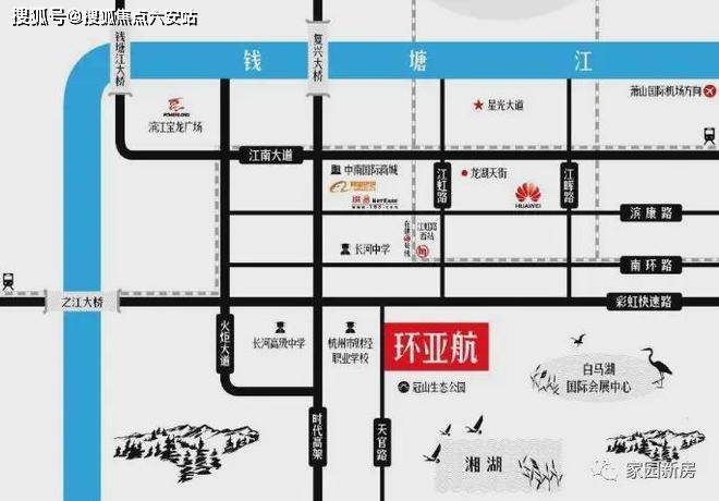 【交通】:五号线聚才路2公里(19年底通车)、彩虹快速路(连通城西与萧山城区)时代高架(连通主城区与滨江核心)两条黄金主干道于本项目门口交汇