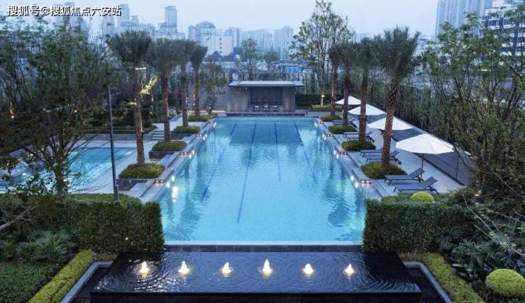 少见的“双泳池”并非符号化设计:主泳池满足成人使用,儿童池铺防滑垫保障安全,周边搭配躺椅与棕榈树,植入“度假式场景”,让业主无需远行即可享受“游泳+日光浴”的松弛感。