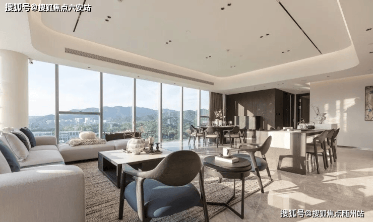 创新性采用三面玻璃幕墙体系,打造高达270度的环幕视野,让客厅、餐厅、卧室等多个空间皆能直面山景,引景入室。