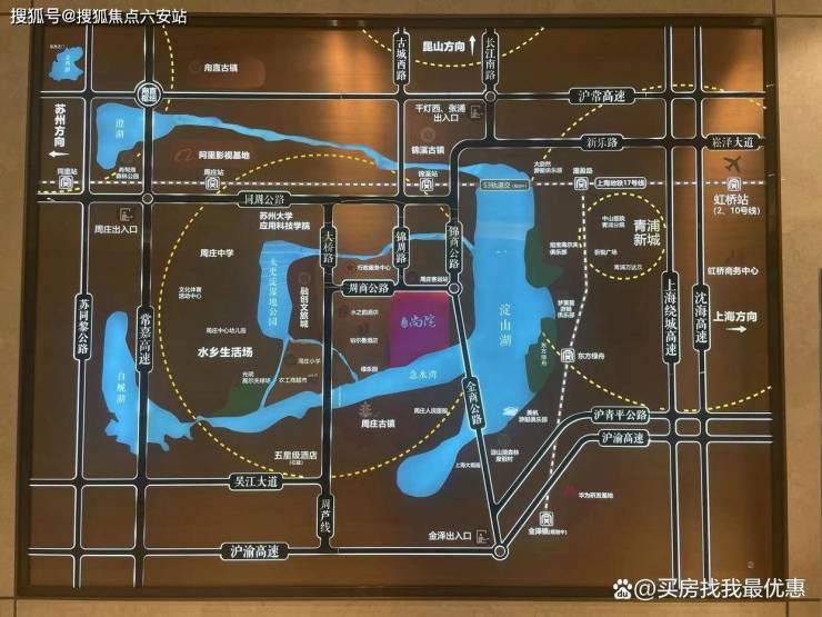 踞守昆山周庄镇周商公路1号,三面环抱2500亩白蚬湖,与5A级周庄古镇隔水相望。作为长三角文旅融合标杆,项目距上海虹桥枢纽78公里(社区巴士45分钟直达),坐拥G50高速、沪青平公路双轴驱动,规划地铁20号线(建设中)将形成立体交通网。