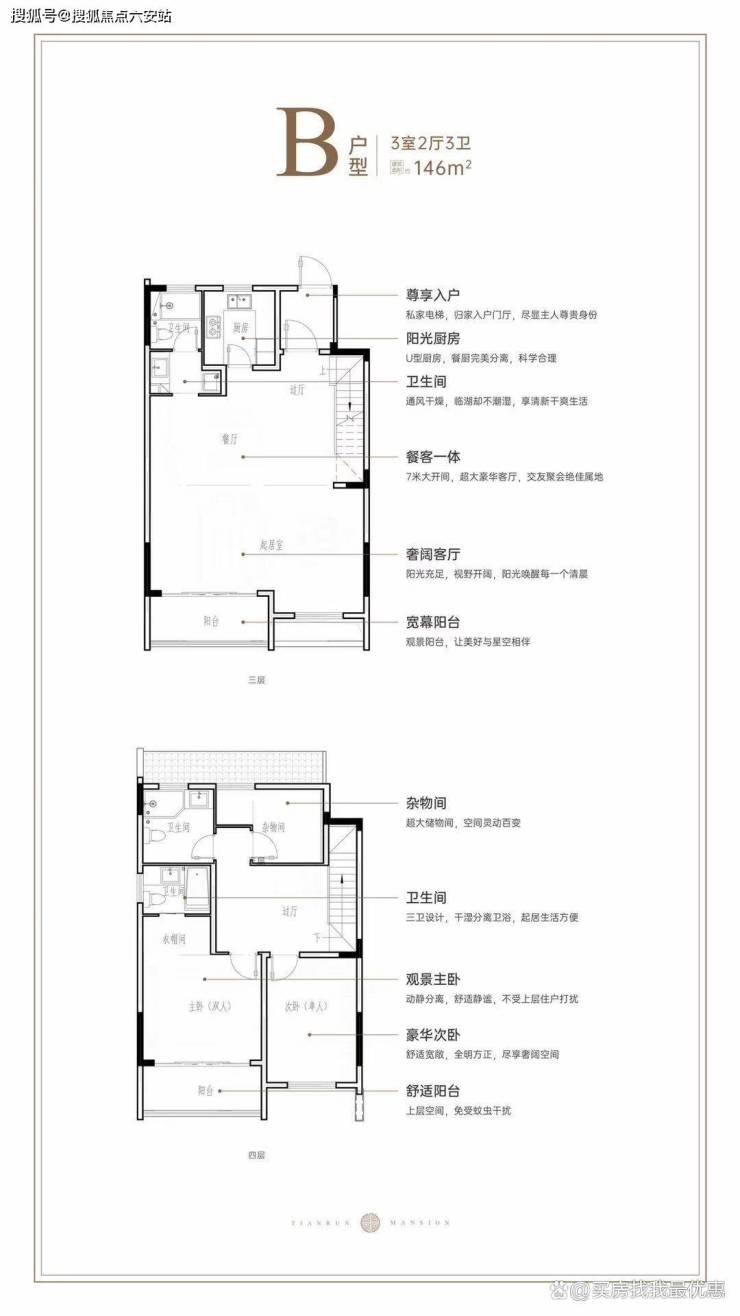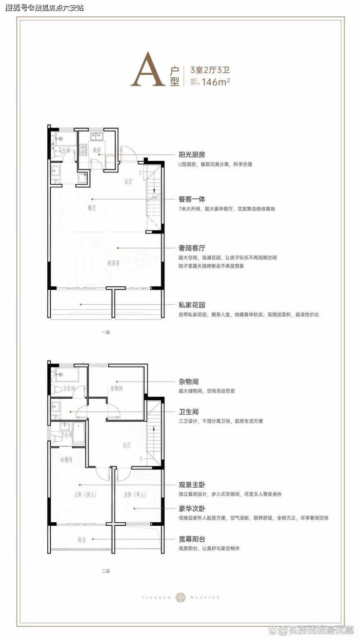 户型:主力户型为建面约 146㎡的三室两厅三卫,上叠带电梯,下叠赠送 20-80㎡庭院。