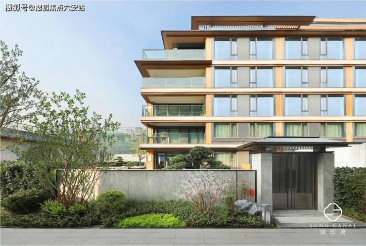 你看,坡顶飞檐、阶梯入门、青松绿植、格栅围墙……高门大户般的门头,流转着东方气韵,再现风雅之境。