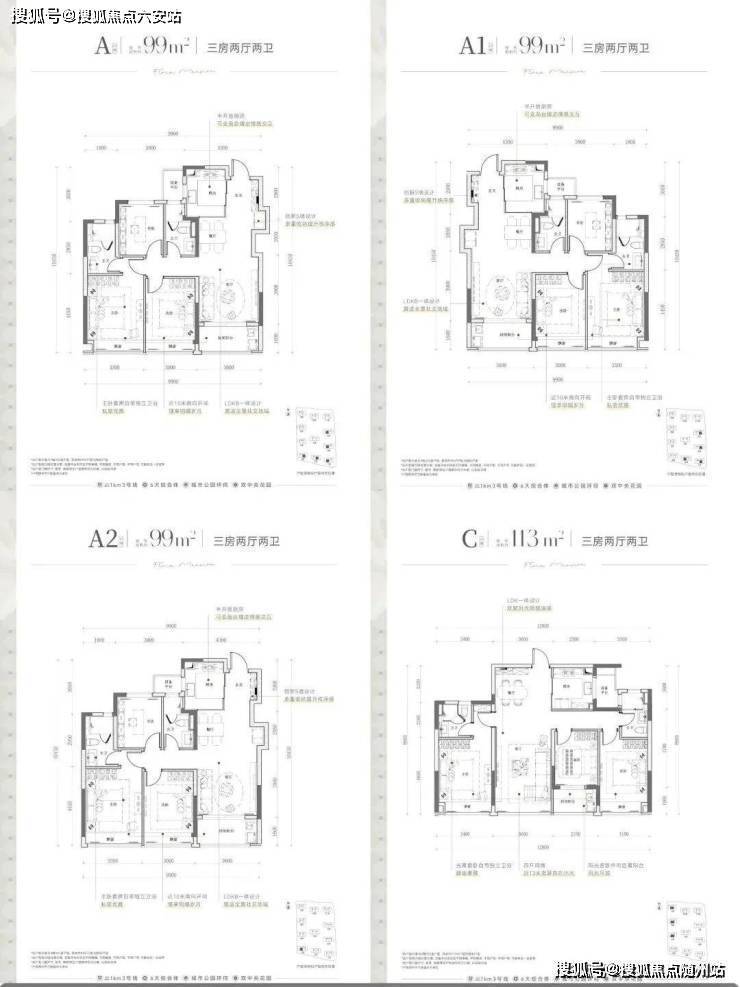建面约99㎡的三房两卫户型,动静分区,采用三开间朝南设计。建面约113㎡的三房两厅两卫户型,四开间朝南,拥有封闭式阳台,南向采光充足,使得整体空间更加宽敞明亮。🔻售楼热线:☎ 400 832 8823「售楼处」☎〢网上售楼中心〢🔻