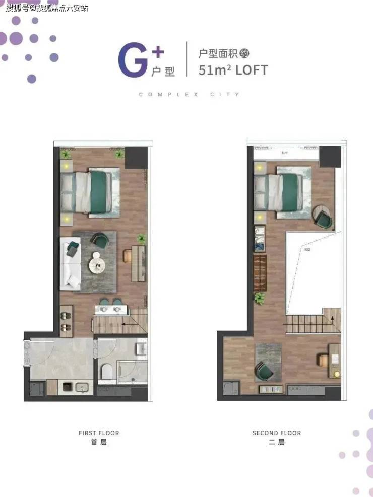 产品灵活:29-51㎡平层/LOFT公寓,总价51万起门槛亲民;