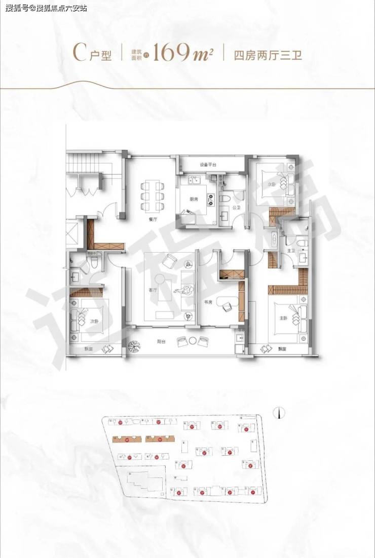 如果你想要舒适度进阶,也可以考虑边套建面约130方四房两厅两卫户型。