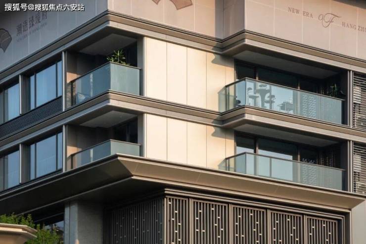 与传统涂料外立面相比,潮语臻境府采用的铝板+玻璃立面成本更高,耐久性更好,整体质感更为高级。香槟金色的铝板搭配斜切工艺,营造出轻奢潮流和通透雅致的气质,使项目成为市北西板块的美学典范。