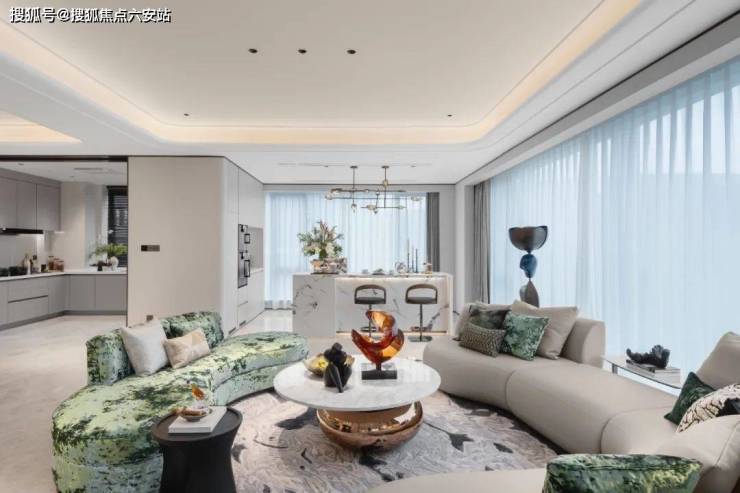 携手国际大师团队,以“水晶天幕”为设计理念,采用Low-E中空玻璃与阳极氧化铝板,打造建面约320-360㎡环幕大平层。外立面如流动的丝绸,与运河波光粼粼的倒影交织,形成“建筑即景观”的视觉奇观。