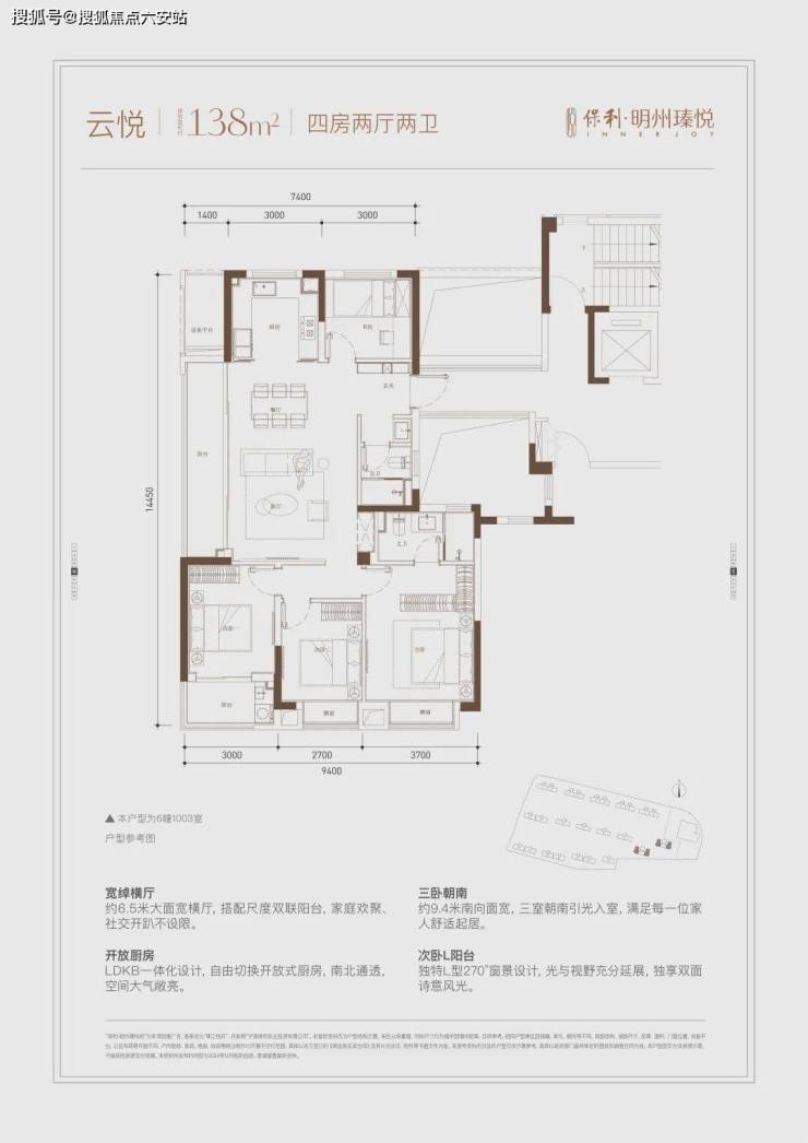 应海曙高阶改善需求,明州瑧悦于中轴景观之上,匠呈建面约138㎡朗阔四房,实景样板房6月即将献映