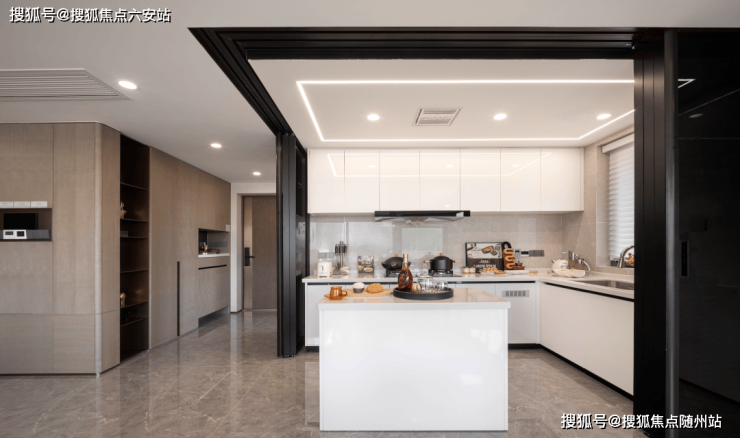 中西双厨 藏着品质生活的双重可能 , L 型中式厨房操作台面宽敞,洗、切、炒动线合理,轻松做出一桌烟火家常菜;独立西式吧台 则是格调主场,烘焙甜点、调制鸡尾酒都得心应手,周末与挚友小酌畅谈,烟火与雅致无缝衔接