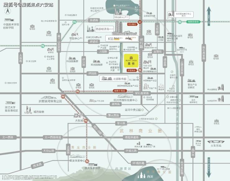 嘉悦中心构建了 “双轨 + 双路” 的高效通勤网络,交通优势十分显著。项目距离地铁 10 号线祥园路站仅200 米,4 号线杭行路站约800 米,4 站即可畅达钱江世纪城,快速连接武林广场、西湖等城市核心区域。