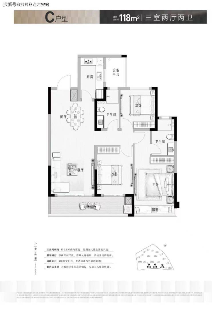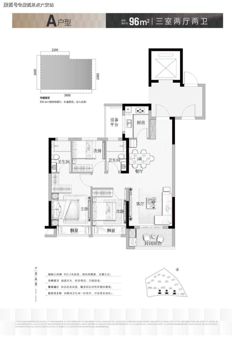· 空间魔法:建面约96㎡三房两卫设计,6.2米南向采光面,得房率高达82%。