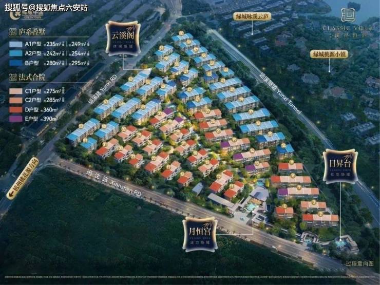 整个项目总占地面积约150亩,包括285-400平米的法式合院和235-300平米的庐系叠墅两大类产品。