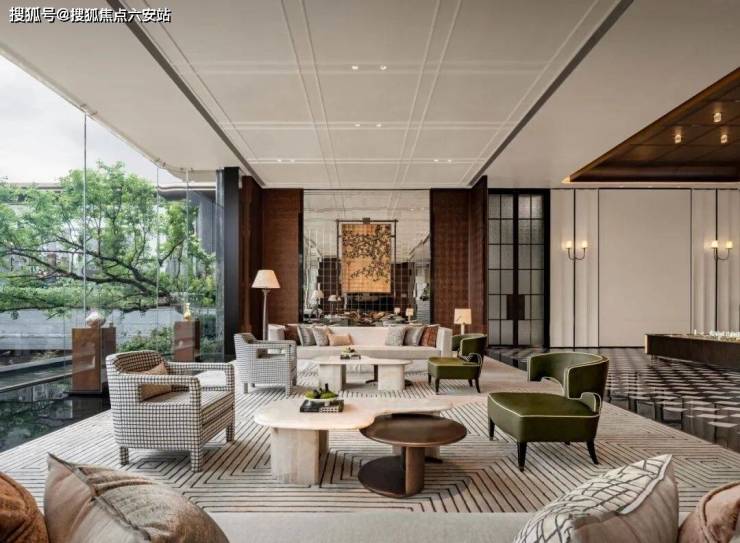 丽香庭的会所空间打破传统平面布局,创新性地将会所与泛会所融为一体,以垂直空间结构优化功能分区;同时遵循立体游园动线,确保空间布局的合理性。生活馆作为示范区核心建筑,巧妙内退于主庭院与次庭院之间,大面积玻璃幕墙的应用,使地面层的生活馆、茶室及地下一层的健身房、瑜伽室、恒温泳池、私宴厅、棋牌室等空间,均能直面庭院景观,实现全方位的景观渗透。每个独立大空间内采用开放式功能分区设计,在保持通透感的同时,兼顾私密性与舒适度。