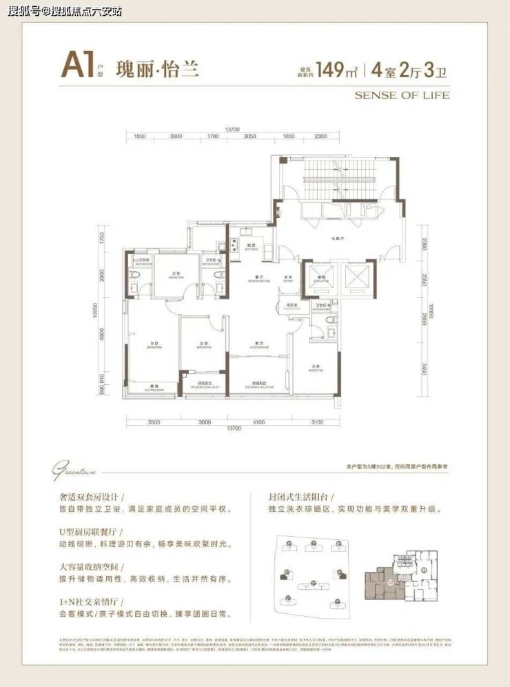 149㎡和185㎡,本次加推的为尚未开放样板间的170㎡户型: