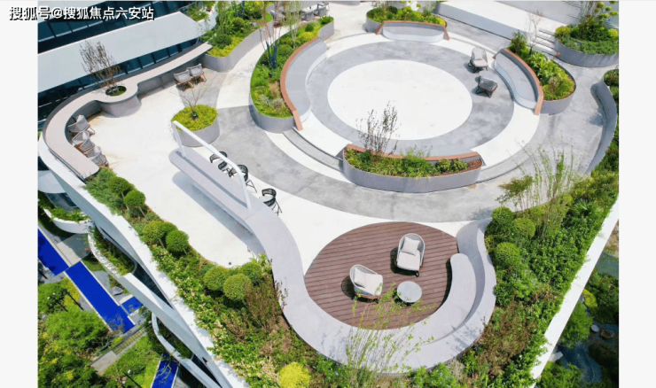 容积率仅1.6,绿化覆盖率40%,打造“每百平7棵乔木+64㎡灌木”的垂直绿化矩阵。园区引入“依带水,五组团,九连庭”景观体系,设置空中绿篱、螺旋花园及屋顶露台,重构自然办公场景。