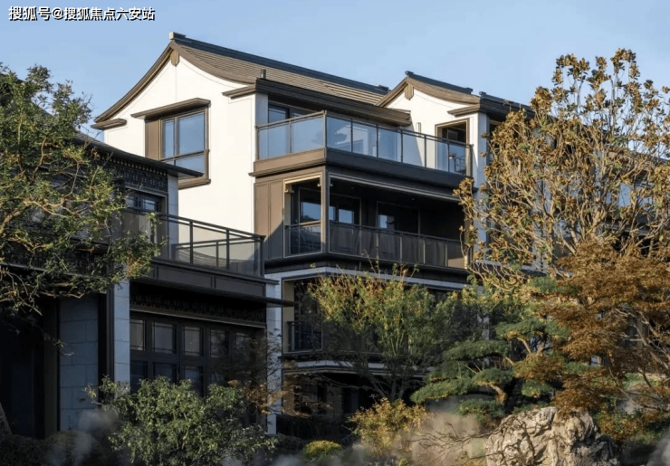 ● 三面茶山环保低密新中式栖居,1.1超低容积率● 新中式园林主题,1000㎡高端会所● 上下叠挑檐造型设计,阻隔视线,增加层次