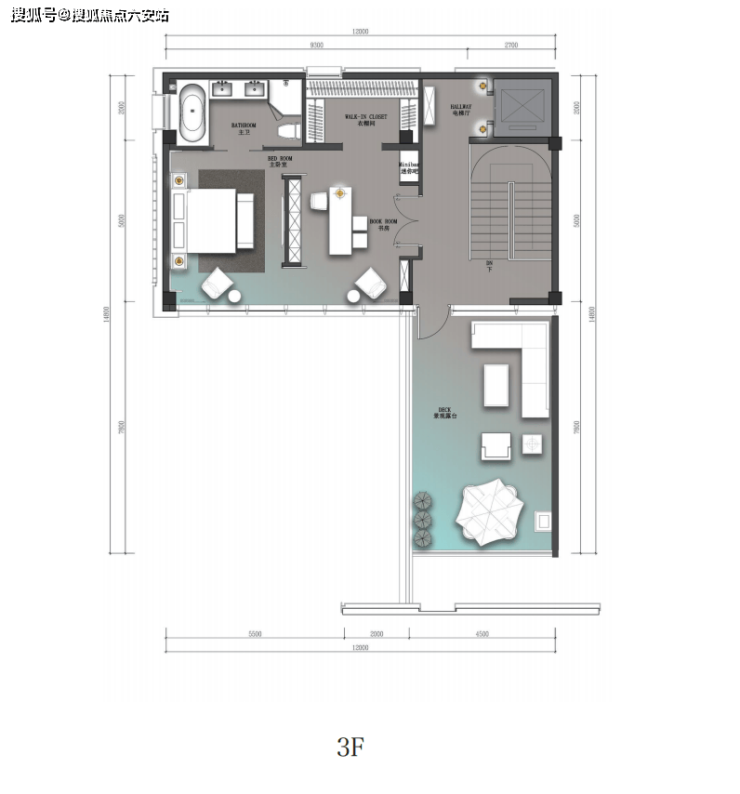 三层端厅式大空间,只打造尊贵一室,利用近乎一整层的面积来满足供主人休憩+工作结合的心灵栖息之地,南向270°大采光面+超广角视野,赏一年四季风景如画。独立步入式衣帽间及带浴缸大卫生间的点缀,更加彰显仪式感、开阔感、功能性、舒适性、私密性强。