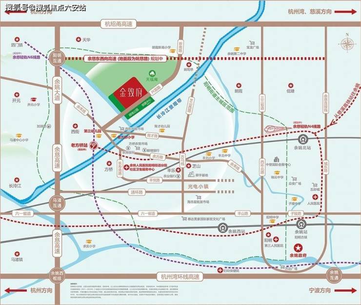更值得期待的是区域未来的交通升级:余慈区域最新规划的N4、N6轻轨线路将设老方桥站,未来可链接前湾新区、泗门、马渚及宁波大市区,形成高效便捷的轨道交通网络。随着长泠江滨水景观带规划建设、老方桥商贸老街更新等城市动作落地,城西片区的配套能级将持续跃升,金致府的区位价值也将同步兑现。