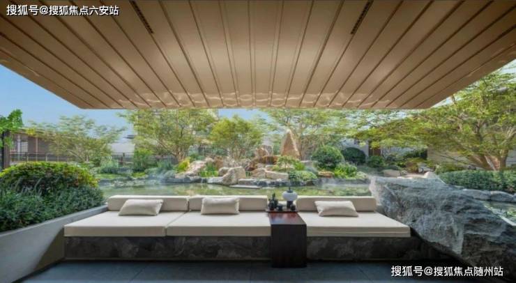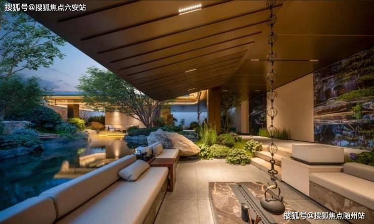 ✅项目以东方宋韵与现代艺术相融合为设计理念,入户门厅采用引园入院的手法,门前水流透过景墙、两侧相迎的黑松以及铜元素入户大门的设计,让归家之路更具尊贵仪式感。