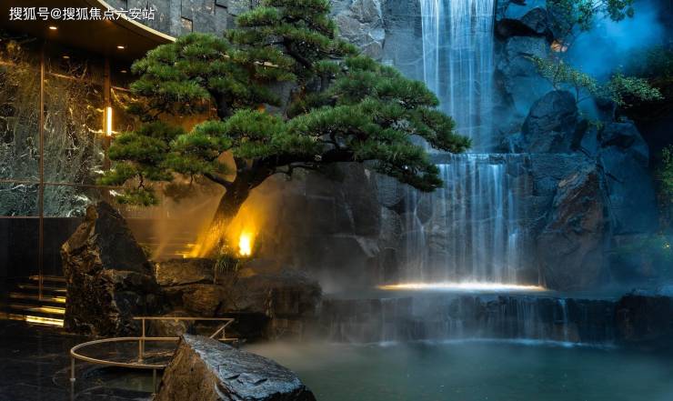 七米飞瀑:600吨中国黑原石叠筑,水声潺潺如天籁