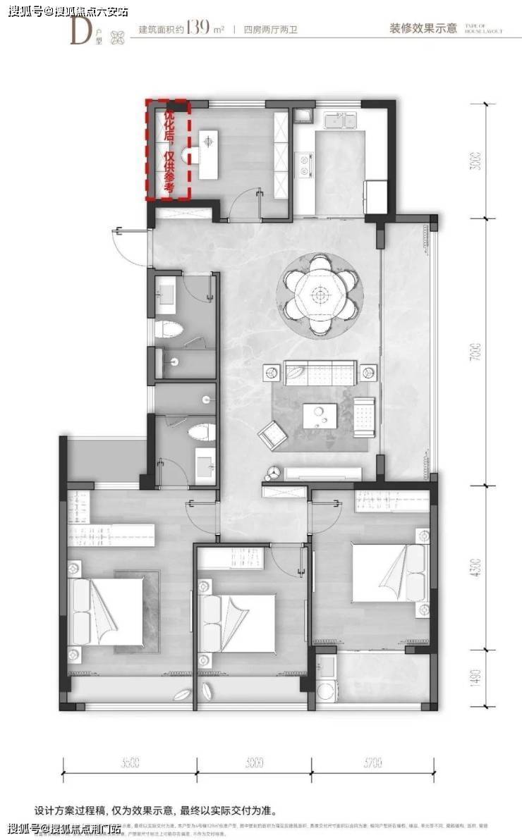建面约139㎡四房两厅两卫户型,预算充足建议首选。