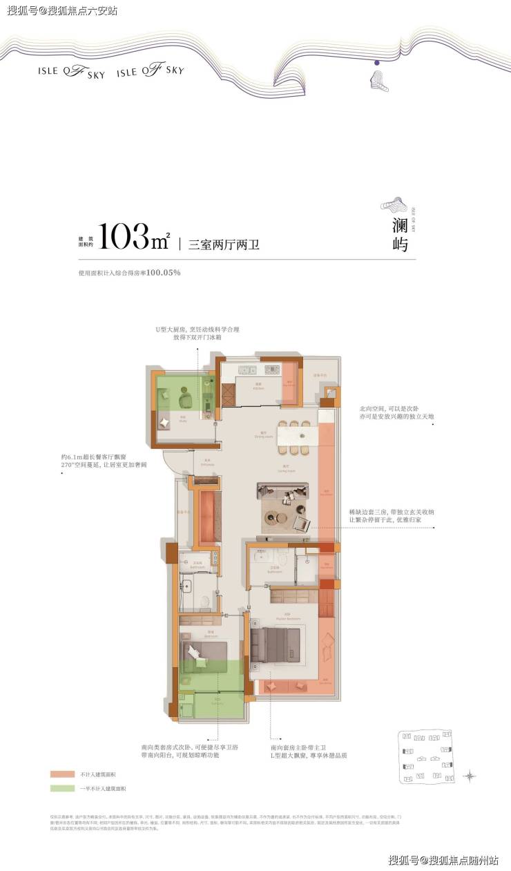 依托浙江省新版建筑面积计算规范,通过最大化飘窗、阳台等拓展面积,部分户型得房率接近100%。例如建面约103㎡户型赠送面积超25.5㎡,实得空间可比肩市面120㎡产品。