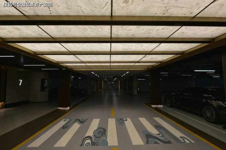 结束一天的疲惫,驱车归家的路上,车库是品质生活的延展。目之所及坡道两侧,三块精准对纹岩板如泼墨山水,铝方通与透光灯膜交织流动光影。