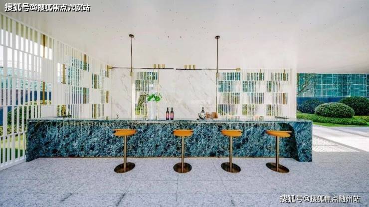 大量的玻璃幕墙+局部铝板等建筑元素的恰当组合,低密的纯洋房大盘在园区中央打造了颠覆性的“六翠之境”:目之所及是一片通透的蒂芙尼蓝,镜面泳池里波光粼粼,倒映着蓝天白云,是真正的“天空之镜”,与边上高大的棕榈树、白色的躺椅、繁茂的绿茵,彼此映衬,海边度假风油然而生。