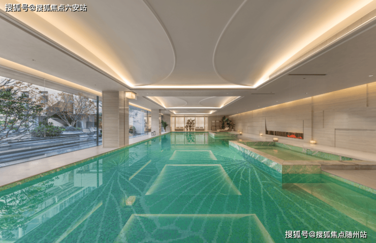 整座园区以“青绿”为基调,把《千里江山图》具象化了。约9.6米的大铜门,出自名家之手。近3000㎡的玉石枫林会所,有恒温泳池、私宴厅、健身房、瑜伽室、室内高尔夫、棋牌室、艺术厅等功能空间,展现了江南意境。