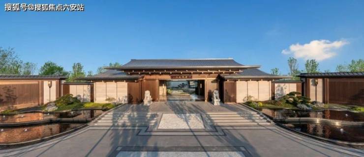 建发云城之上采用建发中式五大系列之一的禅境中式风格,将东方古典文化内涵与现代生活方式巧妙融合。主入口迎宾广场的门楼宽幅长达约 61 米,重檐悬山式设计搭配芝麻黑石材地雕、“鱼跃龙门” 御道,两侧分立石狮和罗汉松,尽显中式建筑的庄重典雅,彰显大户人家的气派。轴对称的大门设计,饰以中国传统华纹,古铜色与木色的配色,沉稳大气又不失雅致 。