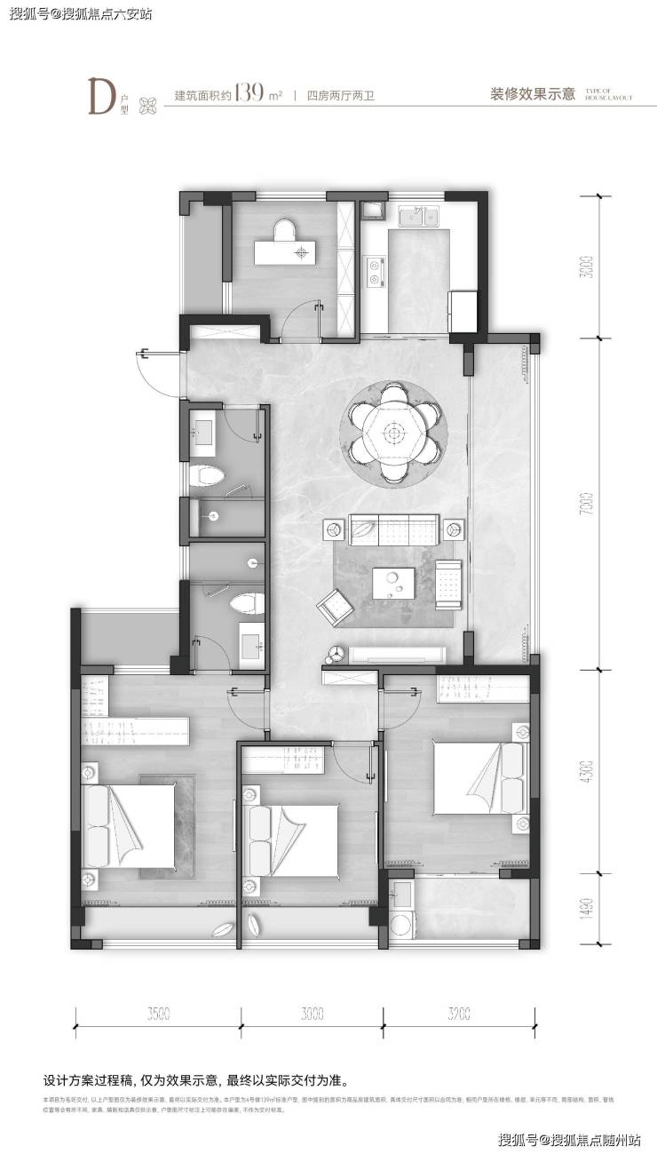 科学空间规划: 99㎡三房实现双卫配置;139㎡边套设计约6.8米宽厅,预留灵活改造空间(+1房),适配家庭结构变化。