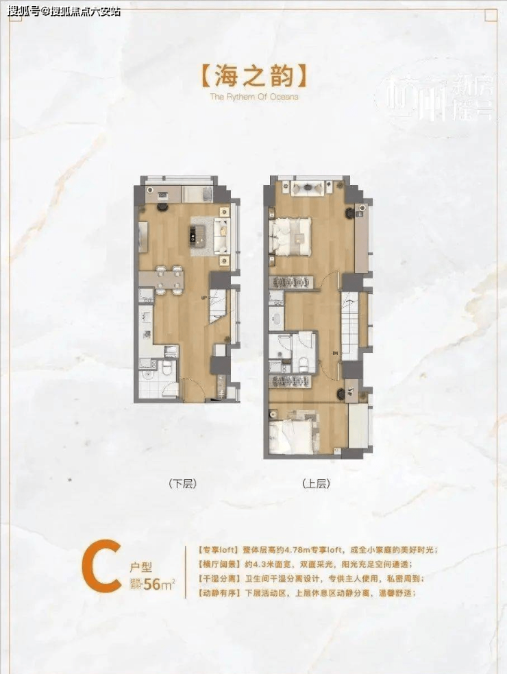 高品质居住体验:公寓采用约4.78米层高设计,居住功能科学合理,可居住或分租两户。