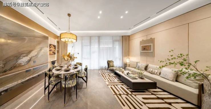 打造“宴乐七境”归家礼序:登门,30米宽唐风门庭,以夹绢玻璃屏风复刻《富春山居图》画卷;水庭,镜面水景与层叠绿植,再现“天光云影共徘徊”的诗意;坊巷,唐代街巷制布局,以竹林小径与亭阁串联邻里空间,重拾“穿庭过巷”的雅趣。