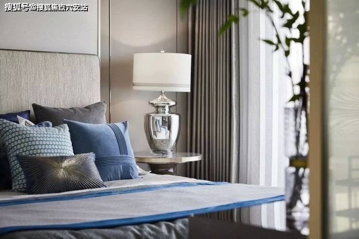 走入空间,可见水纹的柔美点染于软包、画饰、地毯等软装上,渲染出怡人舒适的空间氛围。三扇大面积玻璃门窗,将四时风光纳入框景中,邀人坐看自然的生机、时间的足痕。