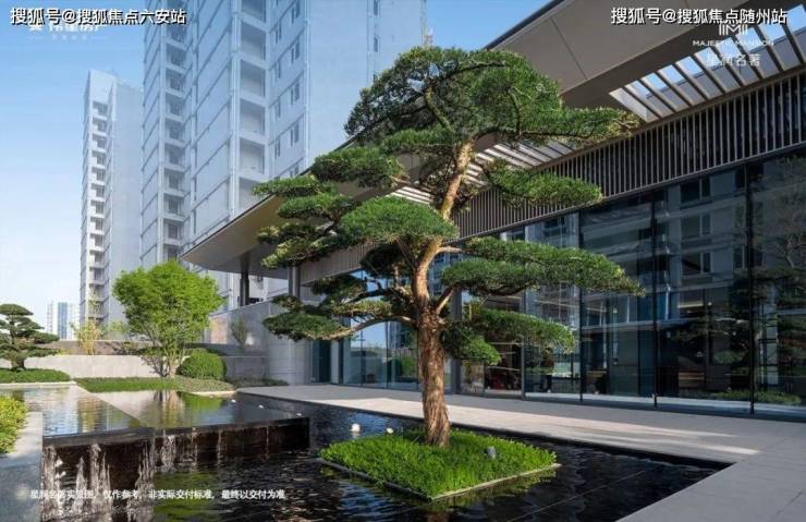 景观体系:"一轴四组团"园林,镜面泳池+探险乐园