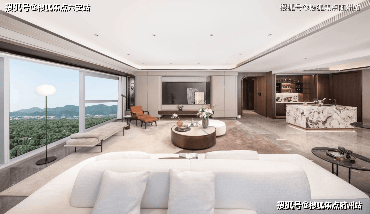 以“站立的西溪”为灵感打造的建筑体块,勾勒出“都市山水江南”的水墨意境,在世界级中轴线上擘画出新天际;超百方的巨幕会客厅,搭配270°环幕全景落地窗,将城市天际线与西溪生态盛景化作窗前流动的画卷,每一次极目远眺都是对高奢生活的时代注解。